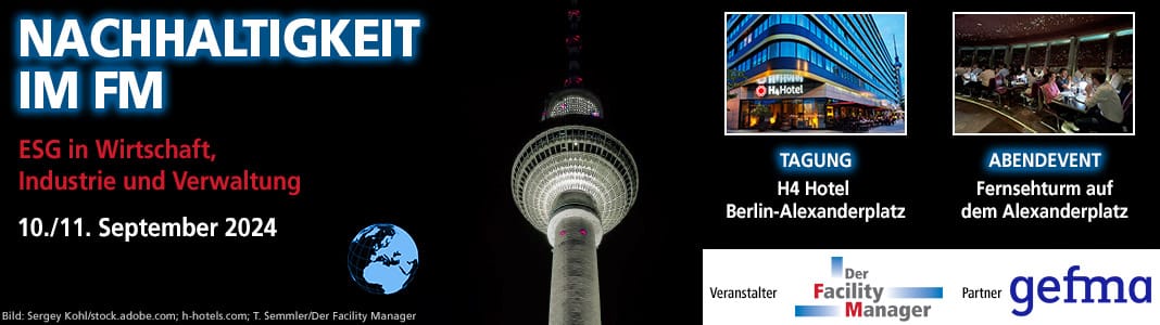 Mit unserer Tagung „Nachhaltigkeit durch FM – ESG in Wirtschaft, Industrie und Verwaltung“, die am 15. und 16. September in Berlin stattfindet, vermitteln wir in Kooperation mit dem Deutschen Verband für Facility Management gefma rechtliches sowie technisches Expertenwissen und zeigen anhand wegweisender Praxisbeispiele auf, wie Immobilieneigentümer und -betreiber den Anforderungen an einen nachhaltigen Gebäudebetrieb gerecht werden. Neu sind in diesem Jahr die interaktiven Masterclasses in kleineren Gruppen, die den Kern des Programms an den Nachmittagen bilden.